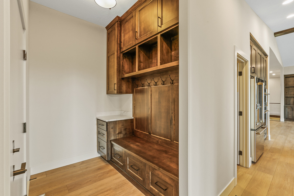 Recent custom build in our Trickle Creek community. Superb finishes, including special built-in cabinetry and custom wood wall paneling!