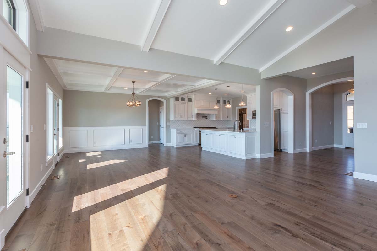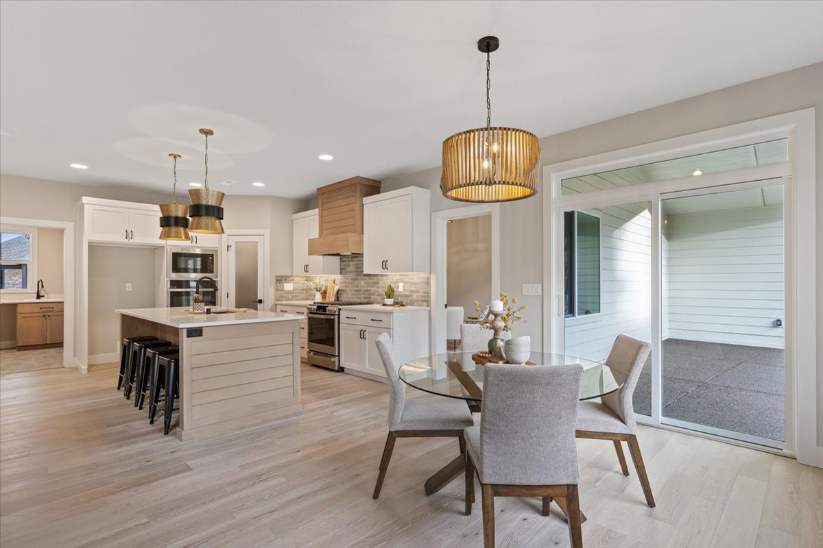 Recent custom build in our Trickle Creek community. Superb finishes, including special built-in cabinetry and custom wood wall paneling!
